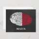 Postkarte mit einem Fingerabdruck em den Farben der Flagge von Malta. Auf der "Best in Viagem 2018"-Liste von Solitário Planet liegt Malta auf Platz 6.