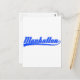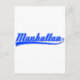 Manhattan, Nova Iorque, escrito com uma haste (cauda). Fontes em branco e azul. Design de texto original.