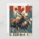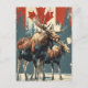 "Envie um pedaço da natureza canadense com nosso Cartaz Vintage Moose Illustration. Apresentando uma mangueira majestosa contra o pano de fundo da icônica bandeira canadense, esse postal captura o espírito do excelente ao ar livre. A ilustração vintage acrescenta um toque de nostalgia, fazer que seja uma saudação perfeita ou uma saudação cuidadosa do coração do Canadá. Compartilhe a beleza da vida selvagem e o orgulho nacional com este charmoso cartão postal que celebra a beleza indomada do Norte."