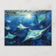Cartão Postal Manta Rays in Expressive Ocean Oil Painting