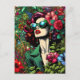 Tenha um belo dia. Um cartão postal bonito para enviar um amigo ou membro da família. Os óculos de sol bonito do estilo quadrinho Hyper-realístico estão em um jardim floral. Arte atai colorida.