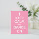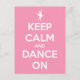 Cartão Postal Mantenha a calma e a dança a rosa e branco