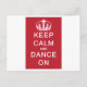 Cartão Postal Mantenha a calma e dança ligada (vermelho)