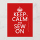 Aqui se lê "Manter Calmo e Movimentar", no estilo do clássico "manter calma poster". Há uma agulha 'perfurada' através das letras, e o fio caindo dele. é um belo toque numa design simples e clássica, que apelará a todos que amam costurar, profissionais ou amadores. Excelente para costurar círculos e aulas de costura.
