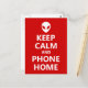 Uma paródia de ficção científica de um clássico design em vermelho e branco. Quando a invasão da alienígena não for tão excelente... mantenha a calma e ligue para casa.