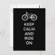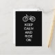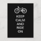 Este design de diversão apresenta uma silhueta branca de bicicleta em um fundo preto e o texto, "Mantenha calma e caminhe".