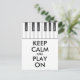 MANTER CALM personalizado e REPRODUZIR LIGADO - palavras pretas e cor branca de fundo (mudança), o teclado de um piano