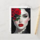 Cartão Postal Manter em contato | Linda mulher com Rosa vermelha