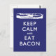 Fique Calmo E Coma Bacon. Bacon vai te acalmar, te amar e te manter... VOCÊ! Devorem bacon delicioso e autoatualizem. Baseado no Poster da Segunda Guerra Mundial, "MANTENHA CALMA E CONTINUE". Texto branco e imagem sobre um fundo azul marinho (#000080 Hex Color).