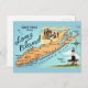 Mapa colorido e ilustrado da Long Island, Nova York. É um cartão-postal antigo reutilizado agora em um novo cartão-postal para ser usado em qualquer ocasião.