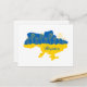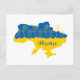 Cartão Postal Mapa da Ucrânia com girassol e bandeira ucraniana