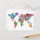 Um mapa de texto tipográfico do Mundo. Cada país é representado por seu nome, que é moldado para se ajustar à área geograficamente correta. Virtualmente todos os países são representados, exceto por algumas das ilhas muito menores no Pacífico e no Caribe.