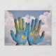 Mapa mundial na palma das suas mãos Cartão poste do Mapa Mundial - viagem mundial