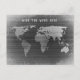 Mapa do mundo preto e branco com texto dizendo "Quem me dera estar aqui"