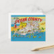 Um mapa de cartão postal vintage, muito colorido, da costa do Condado de Ocean, Nova Jersey, reaproveitado em um novo cartão postal.