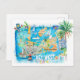 Cartão Postal Mapa ilustrado de viagem de Key West Flórida com e