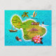 #Maui #Map #Postcard 👉 Mapa Maui com alguns marcos em um fundo marinho azul.