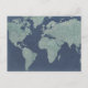 Cartão Postal Mapa Mundial de Linen Azul