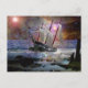 Mar implacável. -Cartão Postal. Fotografia manipulada. Um navio é destruído pelo mar implacável. Contra um belo céu noturno estrelado.