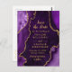 Cartão Postal Marble Agate Roxo e Dourado Salvar a Data