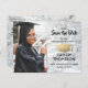Cartão Postal Marble Branco e Foto de Graduação Dourada Salvar a