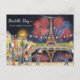 Cartão de saudação Patriótico BASTILLE DAY, com o contorno do mapa combinado com a bandeira TRICOLORE da FRANÇA. Do lado direito está o lema francês - Liberté, Egalité, Fraternité e, abaixo dele, lê-se Joyeux Quatorze Juillet (iluminado. Feliz 14 julho)