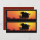 Uma manada de búfalos de Cabo em silhueta contra os incêndios do sol de pôr. Computação de Kathie Miller.