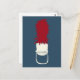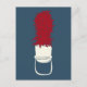 Este cartão postal apresenta uma ilustração simples de um chapéu de banda marcial com penas no topo em creme ou marfim e vermelho escuro, colocado sobre um fundo azul marinho