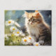 Cartão Postal Margarida Flor de Nascimento de Abril e Gatinho