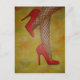 Maria Vai Com Tudo é uma pintura original em vermelho e amarelo de uma mulher vestindo meias de rede e sapatos vermelhos de salto alto. Um presente único com um tema de moda ideal para campanhas do Dia do Sapato Vermelho ou Marchas do Sapato Vermelho. Perfeito para aqueles que amam leggings, meias e moda, amantes de um visual grunge ou fetichistas de meias e saltos altos.