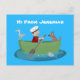 Cartão Postal Marinheiro e cartoon de barco a remos de cãozinho