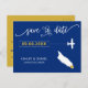 Você escolheu um lugar especial para o seu casamento. Agora é hora de celebrá-lo com esse guardar o cartão postal, com um mapa da silhueta e um pequeno avião a caminho do seu destino. Para mover o coração para o lugar do seu casamento, clique em personalizar e, em seguida, "personalizar ainda mais".