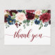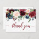 Marinho Borgonha Azul Blush Floral Obrigado Cartão-Postal.
