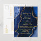 Cartão Postal Marinho Azul e Dourado Agate Marble Weding