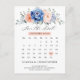 Marinho azul-pincelado calendário de casamento floral cor-de-rosa, exceto a data com buquê elegante de marinho azul, azul real, branco, rosa de jardim azul-pincel, hydrangea e folhas verdes de eucalipto. Entre em contato comigo para obter ajuda sobre a personalização ou se você precisar de outro produto com este design.