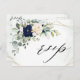 Cartão Postal Marinho Blush Floral Greenery Geométrico RSVP