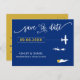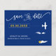 Você escolheu um lugar especial para o seu casamento. Agora é hora de celebrá-lo com esse guardar o cartão postal, com um mapa da silhueta e um pequeno avião a caminho do seu destino. Para mover o coração para o lugar do seu casamento, clique em personalizar e, em seguida, "personalizar ainda mais".