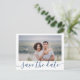 Mande os cartões postais de data na horizontal com uma fotografia para que os seus convidados saibam bloquear a data do casamento. As cores de todo o texto são personalizáveis - você pode escolher uma cor de uma das opções mostradas ou clicar em "Editar Design", onde você pode alterar cada caixa de texto para qualquer cor que desejar. O verso tem um esquema de cores de coordenação, mas você pode mudar facilmente a cor do plano de fundo e/ou do texto se quiser personalizar as datas para salvá-las ainda mais. Verifique nossa grande seleção de cartões salve a data de fotos, cartões postais e ímãs navegando em nossa coleção Imagem Salvar a Data!