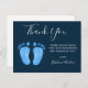 Cartão Postal Marinho de Pés-Bebês Chá de fraldas Azul Obrigado