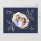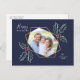 Cartão-postal de férias único e moderno, com uma estrutura de folha de ouro geométrica (faux) moderna, com nossas amoras e folhas de coloração oca. Todo texto é personalizável. Adicione uma foto adicional ao verso e à sua mensagem personalizada.