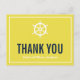 Cartão Postal Marinho e Casamento Náutico Amarelo Obrigado Cartã