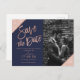 Rosa Dourada tipografia em um bloco de cores com brilho de ouro azul-rosa, personalizável, e stripes geométricas de ouro rosa faux salvam o casamento da data, perfeito para o casamento elegante e na moda,