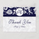 Cartão Postal Marinho Trim Damask Swirings Obrigado Placas