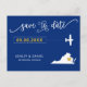 Você escolheu um lugar especial para o seu casamento. Agora é hora de celebrá-lo com esse guardar o cartão postal, com um mapa da silhueta e um pequeno avião a caminho do seu destino. Para mover o coração para o lugar do seu casamento, clique em personalizar e, em seguida, "personalizar ainda mais".