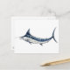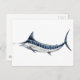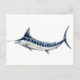 Marlin azul (Makaira nigranes). Este pez es muy buscado por los deportistas. Su cuerpo se llena de colores brillantes cuando está emocionado. Diseño original: acuarela sobre papel por Chloé Yzoard