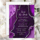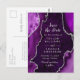 Cartão Postal Mármore de Agato de Púrpura e Prata Salvar a Data