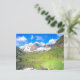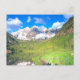 Na frente deste cartão-postal, o espetacular pico gêmeo Maroon Bells ergue-se acima de um campo de verão verde na Selvagem Maroon Bells-Snowmass da Floresta Nacional do Rio Branco no Colorado. Atrás dos picos está uma nuvem azul vívida pontilhada no céu do Colorado. Linda! A dentro desta placa é vazio deixada para sua própria mensagem.