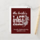 Sim, haw! É hora de celebrar uma última vez antes que esta vaqueira seja apanhada! É a última viagem da noiva antes de se estabelecer, também conhecida como uma solteira ou uma festa de galinha. Design apresenta uma vaqueira correndo em seu cavalo com texto e estrelas distantes da escrita ocidental e gorda. Perfeito para um evento temático ocidental ou countryMostrado no Maron Aggie. Também disponível em uma combinação de pinks, estado de bandeira azul e vermelha e laranja queimada. Produtos correspondentes disponíveis.