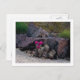 Um cacto de ouriço na flor com uma formação de rocha que olhe como um submarino encalhado como um contexto. Lugar: Parque nacional de árvore de Joshua, Califórnia.
