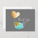 Um simples "obrigado" para aqueles que fizeram tanto. Design apresenta uma máscara azul com balão de cor d'água, texto branco de script e buquê de girassóis no fundo da cinza.